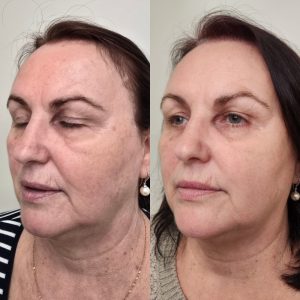 – hooded eye lines and wrinkles/ crepey skin under the eyes.
